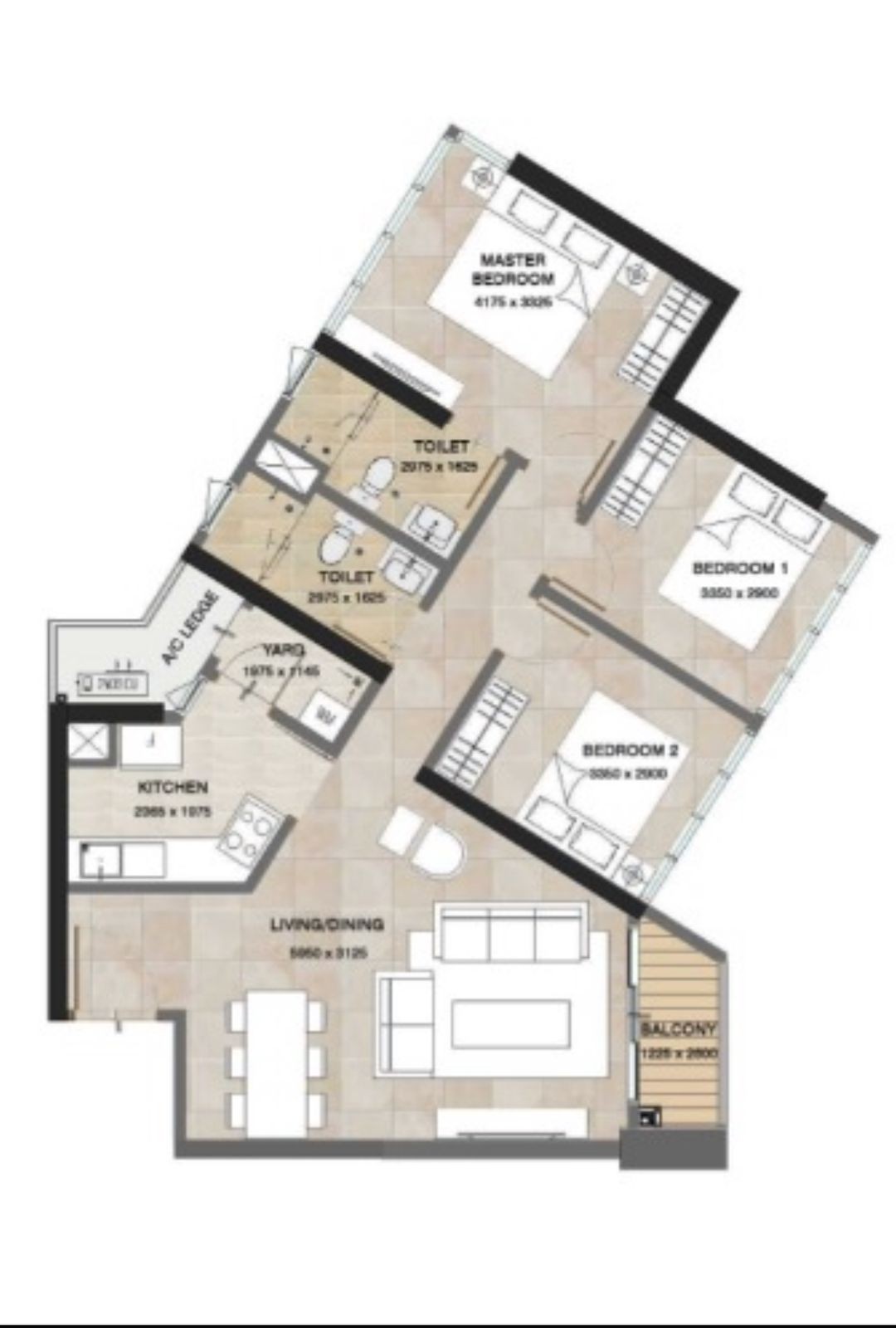 Colombo 2 Luxury Trizen Brand New UnFurnished Apartment having a Floor Area of 989 SqFt with 3 Bedrooms and 2 Attached Bathrooms on the 33rd Floor is Available For Sale with One Dedicated Car Parking Slot.