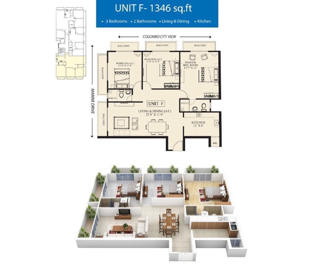 A newly built, modern, and fully furnished 1346 sq.ft apartment located in Wellawatte (Colombo 06) with a stunning beach view. Perfect for a good family seeking a secure, peaceful, and comfortable long-term home in a premium location.