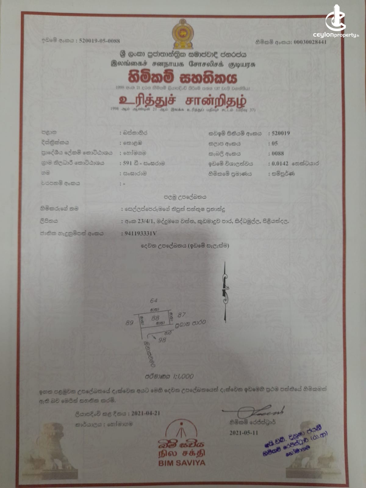 This advertisement is posted on the Ceylon Property.lk by the mentioned advertiser. As Ceylon Property.lk has no affiliation with property advertisers, we are not responsible for the accuracy of the ad's content and we are unable to guarantee their services or we are not responsible for services provided by the advertisers. We as Ceylon Property.lk only provide the platform for the advertisers to list their properties. You will be contacting the advertiser (Property Owner/ Real Estate broker/ Agency/ Developer) of this property directly. We advise you to take precaution when making any payments or signing any agreements and be alert of any possible scams. If making any payments we recommend that you have two permanent & verified methods of contact of the payment receiver such as their landline number and home/business address. For more information, please check our Terms of use.