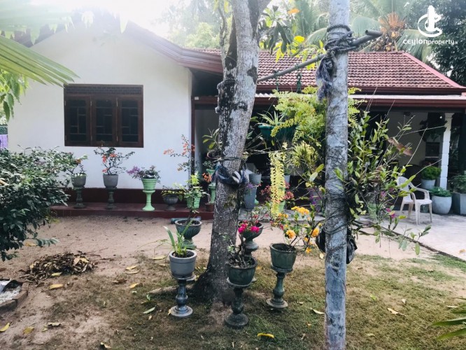 පොල්ගස් හා වෙනත් වගාවන් ඇත.වට තාප්පයක් හා ගේට්ටුවක් ඇත.නිවසේ සිට මහා මාර්ගයටම මීටර් 100.