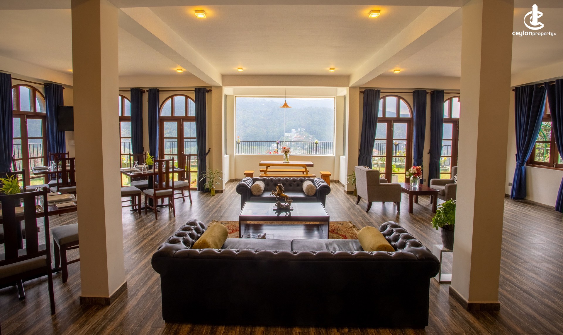 The Wind Castle hotel commands an impressive presence in the form of an ancient Scottish-style castle set atop a hill offering stunning views of the surrounding lush green mountains of Nuwara Eliya while facing the tallest mountain in Sri Lanka – the famed Pidurutalagala Mountain (Mount Pedro). The constant flow of a fresh, cool, and gentle wind through the mountains is where the hotel derives its name from.