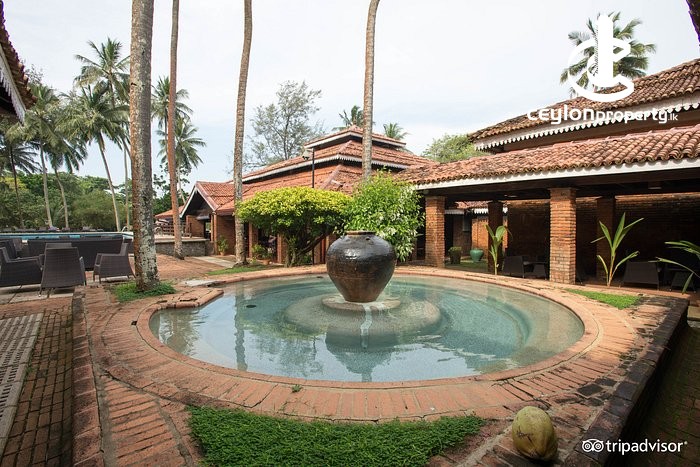Club Bentota was built in 1982 by South African architect, John Drake. The teak and Palmyra fittings in classic southern Sri Lankan style, with stylized roof fringes, columns, and roof beams all add to the buildings’ unique character and ambiance. The red brick exterior, columns, and herringbone-patterned flooring transport you to a different era. Access to the upper floor is via a wooden gantry supported by a complex interlocking latticework of vertical and horizontal architectural lines; the wooden meshwork makes a profound artistic statement that alters your mood ostensibly. The extraordinary vaulted roof, with baked red clay tiles, completes the magical setting.