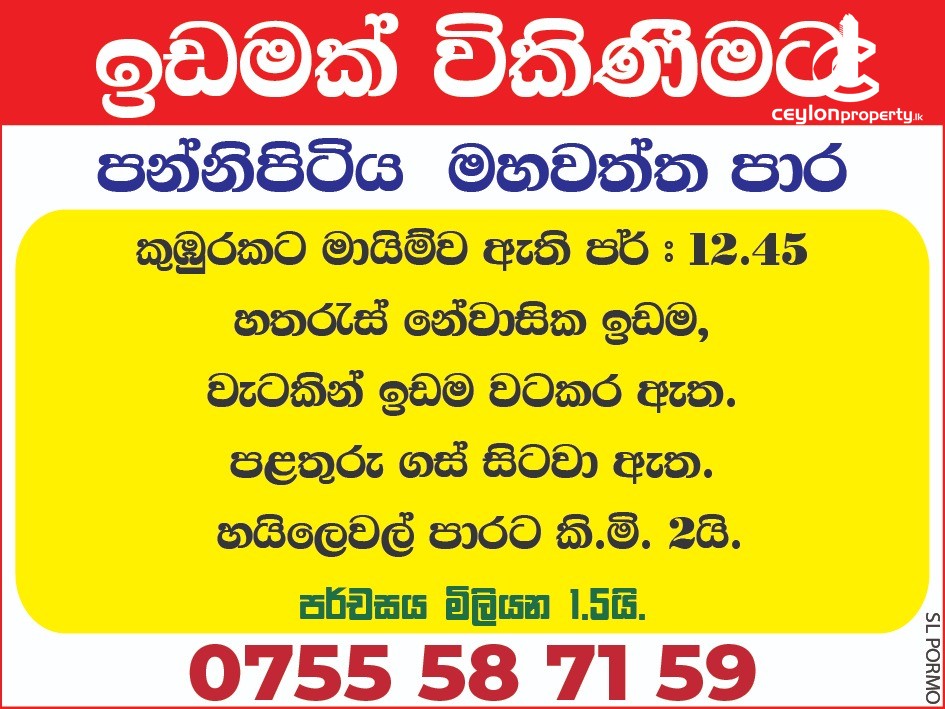 පන්නිපිටියෙන් ඉඩමක් විකිණීමට ඇත​