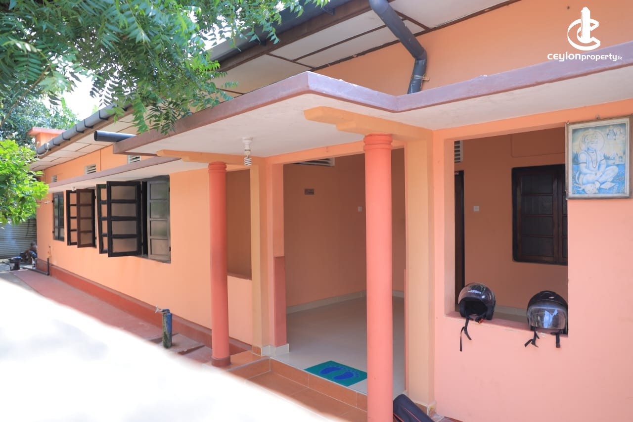 Currently running as a guest house on 3.5 parrapuland with 2 double gates, all around fenced and high walls, consist with 8 rooms with fans and one with ensure and AC, fully furnished, kitchenette, one bathroom, large sitting and dining room. Large Verranda,new out door house, 3 outdoor toilets, 2 wells one with equipped with motor and pump , shed, lots king coconut trees, bananas. Mangoes and other fruit trees and flower gardens. Asking price 12 kroes. This property is behind corner or kasthuria road and standley road in Jaffna.
