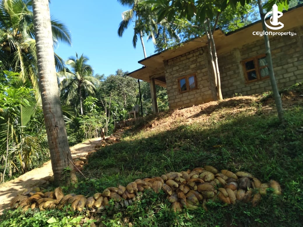 ◼ ස්ලැබ් කොන්ක්රීට් සහිත අඩක් ඉදිකළ නිවස ◼ වැඩුණු පොල් ගස් 20 ( අස්වැන්න ලබා ගත හැක)