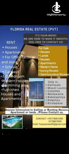 This advertisement is posted on the Ceylon Property.lk by the mentioned advertiser. As Ceylon Property.lk has no affiliation with property advertisers, we are not responsible for the accuracy of the ad's content and we are unable to guarantee their services or we are not responsible for services provided by the advertisers. We as Ceylon Property.lk only provide the platform for the advertisers to list their properties. You will be contacting the advertiser (Property Owner/ Real Estate broker/ Agency/ Developer) of this property directly. We advise you to take precaution when making any payments or signing any agreements and be alert of any possible scams. If making any payments we recommend that you have two permanent & verified methods of contact of the payment receiver such as their landline number and home/business address. For more information, please check our Terms of use.
