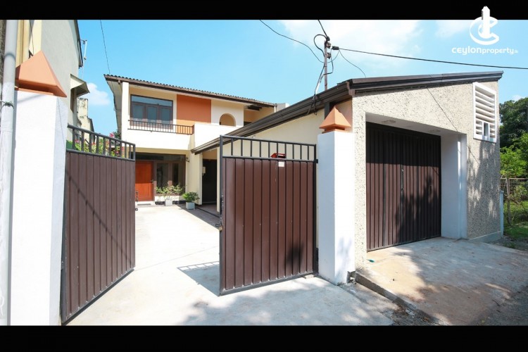 This 2 storey house is on 9.1 perches with 5 bedrooms. There are 4 large bedrooms and 2 full washrooms in the main house, along with 1 room 1 full washroom, Kitchenette and a small sitting area in the adjoining annex which has a separate entrance. The ground floor bedroom has an attached washroom. Upstairs has 3 bedrooms, a washroom and a balcony. The ground floor is fully tiled, following an ‘open concept’ living room and dinning room with a ‘courtyard’. Kitchen was recently renovated with new pantry cupboards. Further more, there is a servant’s toilet at the back of the house.