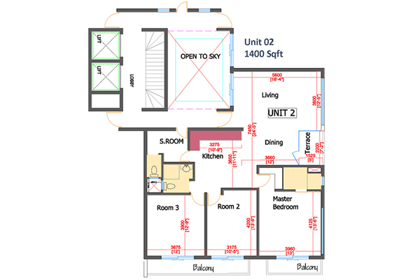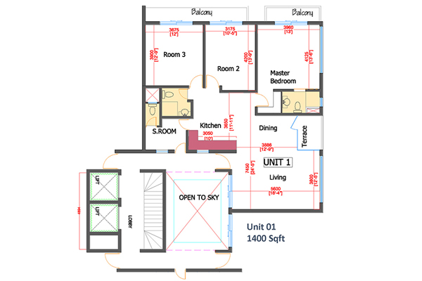 Floor Area : 1400 Sqft.