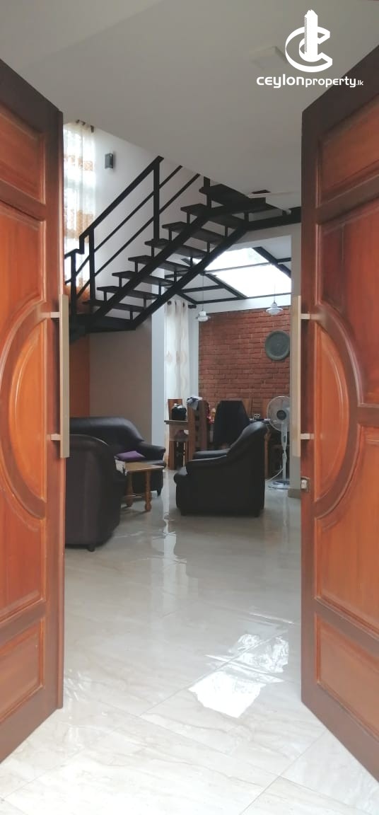 A two-story house situated in Moronthuduwa-Horana bus road with a master bedroom, kitchen, open veranda, and car parking slots for 2 vehicles