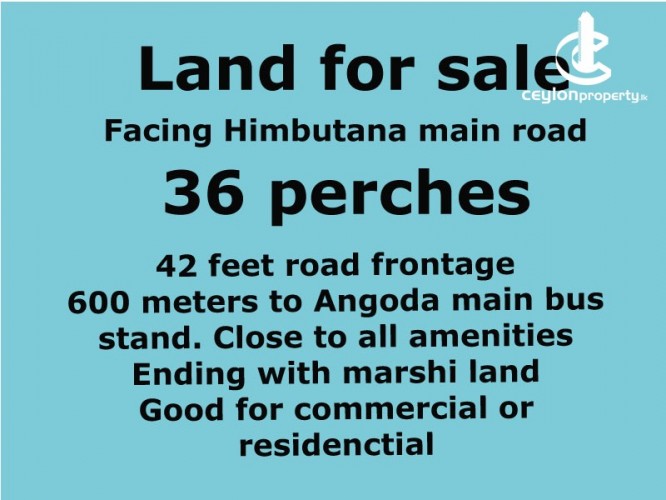 This land is facing 41 feet to the main Himbutana road (164 bus root). The end of the land width is 80 feet. and facing a marsh area. Good neighborhood and matured coconut, jack, butter fruit, and many trees. Good for commercial or residential development. ANG-0004