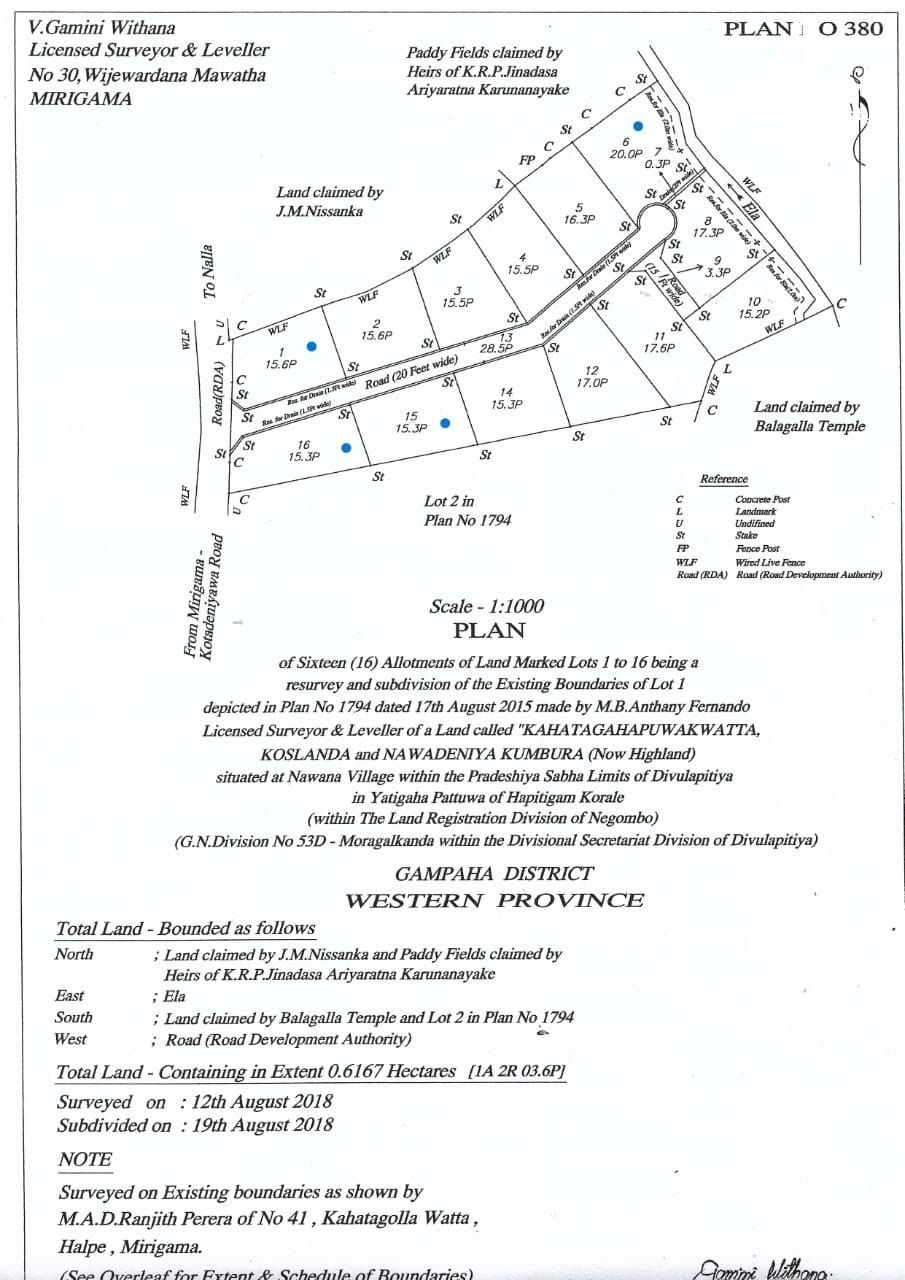 ◼️ Three blocks of 15.5 p and one block 20.0 p. Three km to Mirigama North Central Expressway interchange and Mirigama South