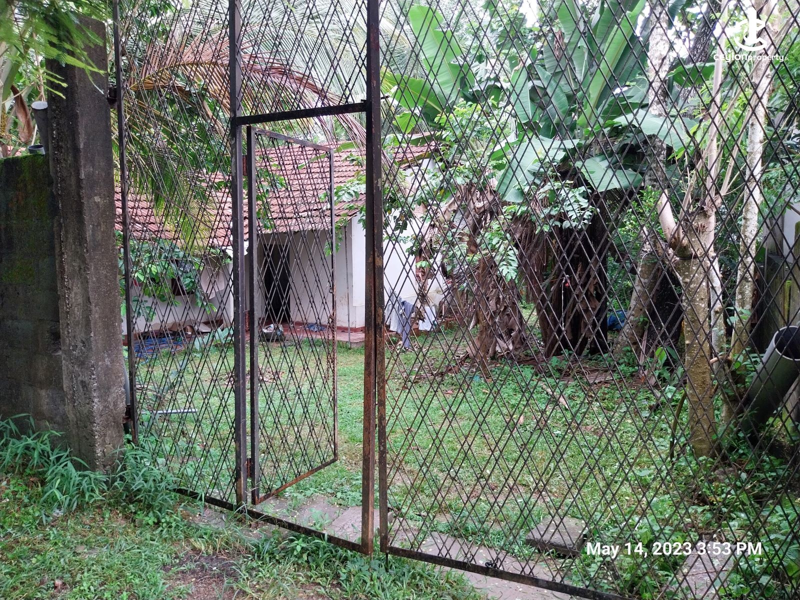 The entire land is covered by a cement block wall fence with the steel gate at the entrance.
