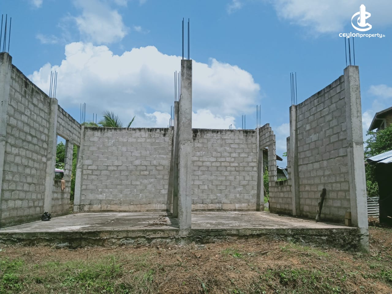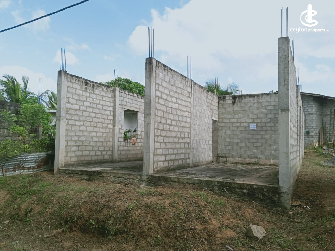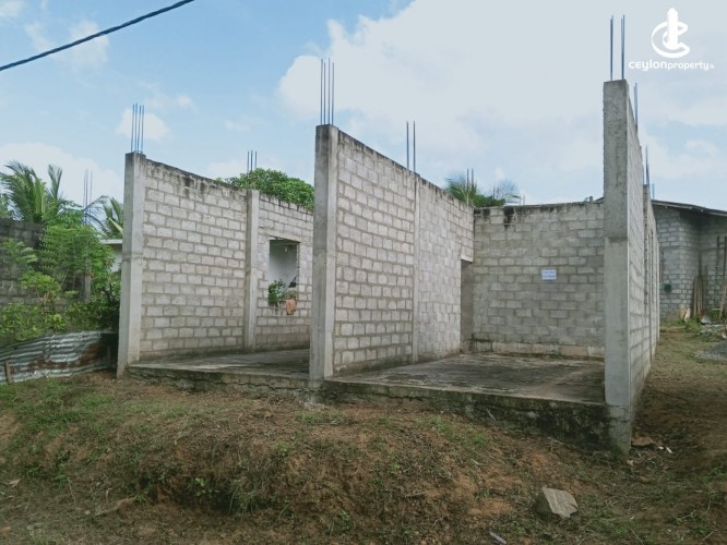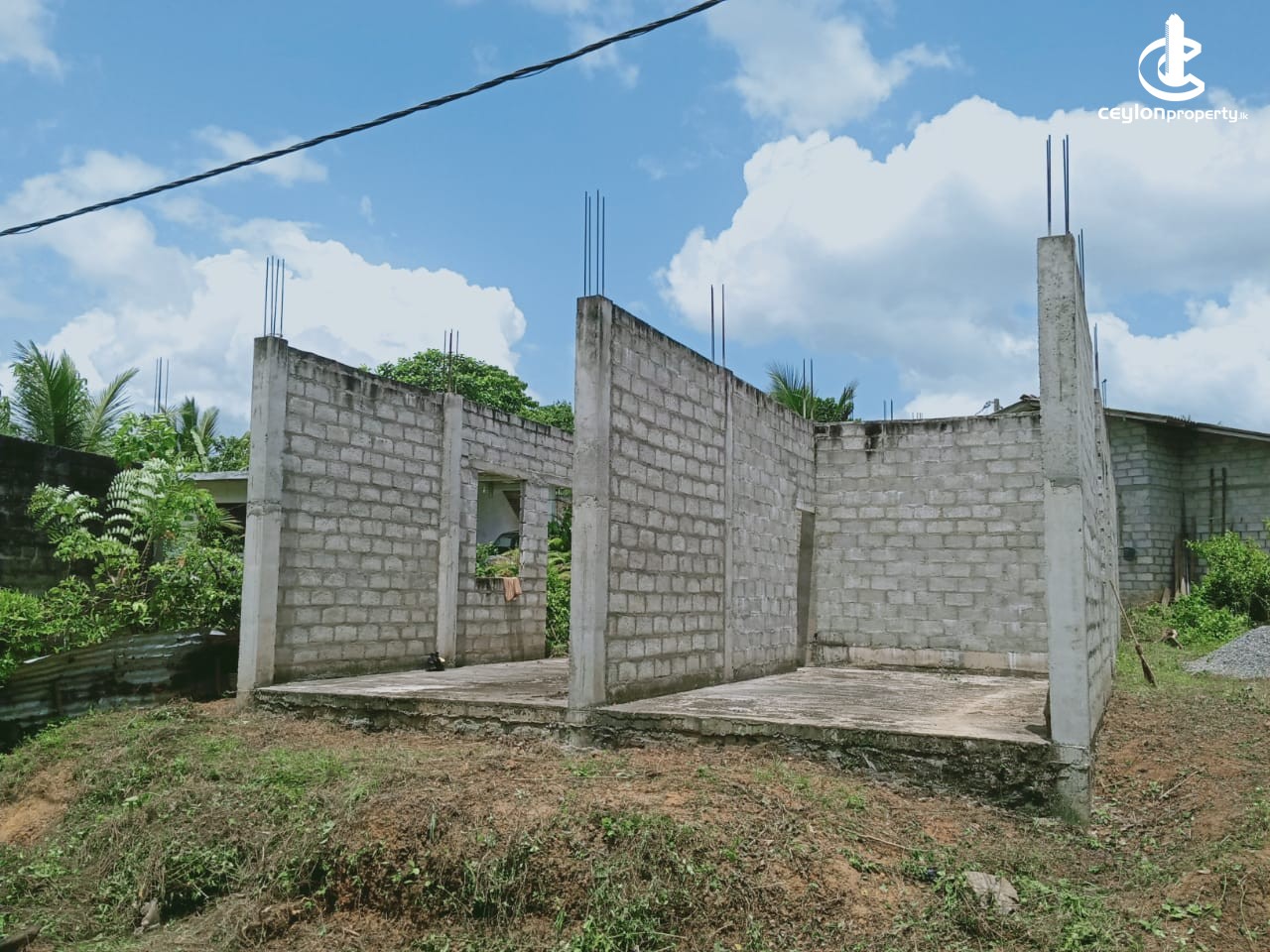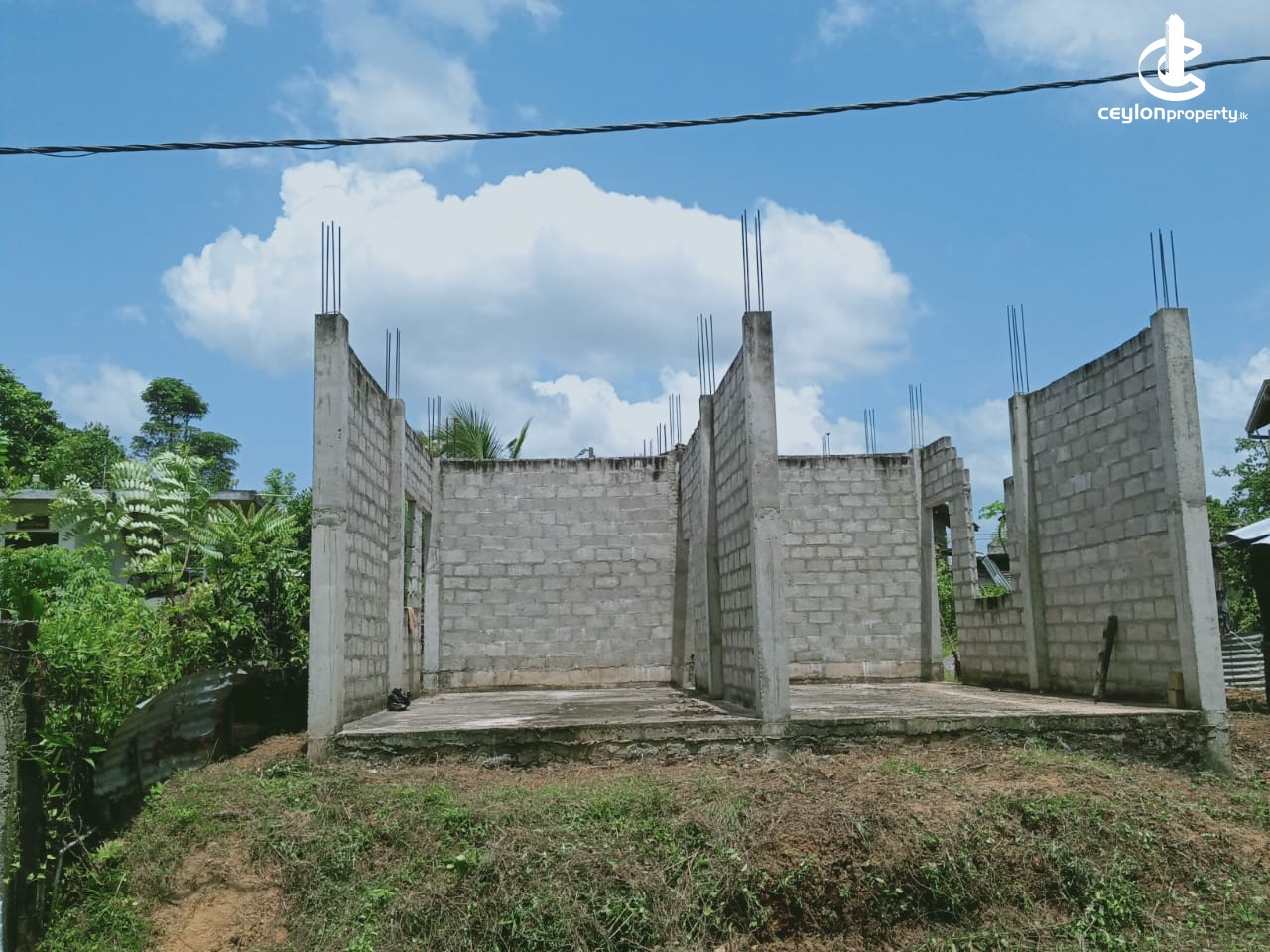 ⬛ Piped water and electricity have been obtained to the land itself. It consists of a half built house of 1200 square feet and two shop rooms built next to it facing the road.
