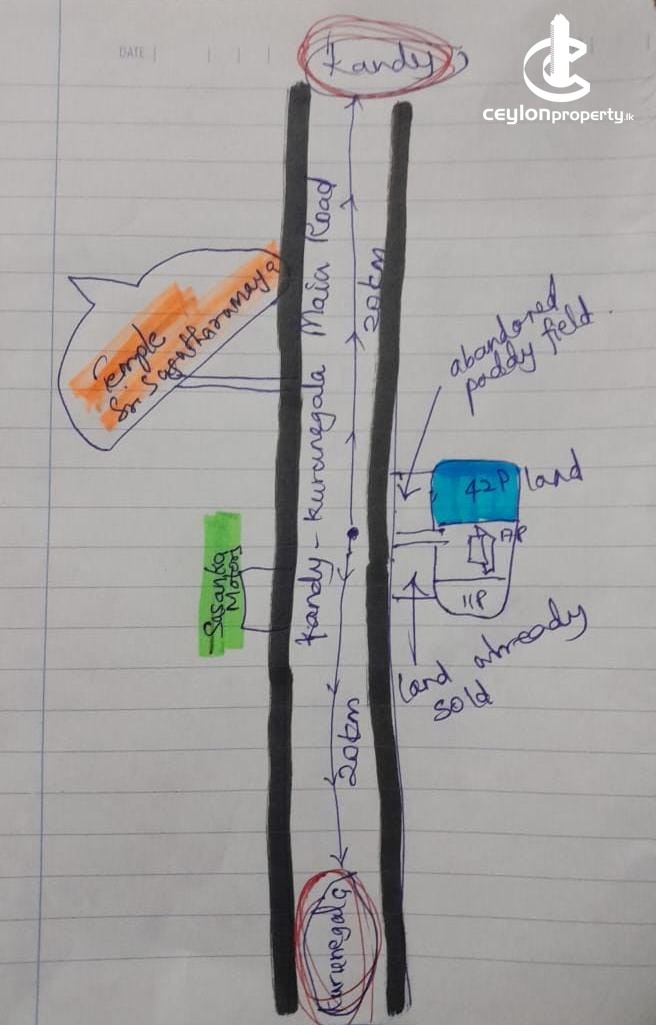 This land is situated midway between kandy and kurunegala near the main road. ( 20km from kandy and kurunegala town )